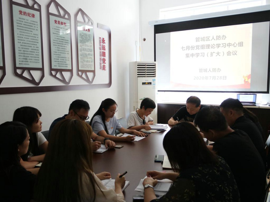 7月28日下午,管城区人防办召开党组中心组理论学习(扩大)会议,会议由党组书记、主任孟繁主持,办中层以上干部参加会议。