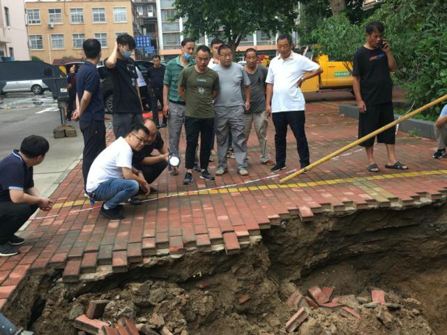 主管领导陈建民要求管理单位封锁警戒塌陷区域,做好防汛措施,防止险情进一步扩大;二七区防办及管理单位密切关注后院早期人防工程情况,如有异常及时上报。