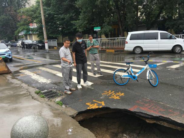 13:45勘查小组继续前往二七区西中和路和平新村街交叉口处塌方点(长4米宽2米),经过现场对比早期人防工程图纸,排除塌方位置存在早期人防工程,初步判断为雨污水管道冲刷形成空洞,基本判定塌陷与人防工程无关。