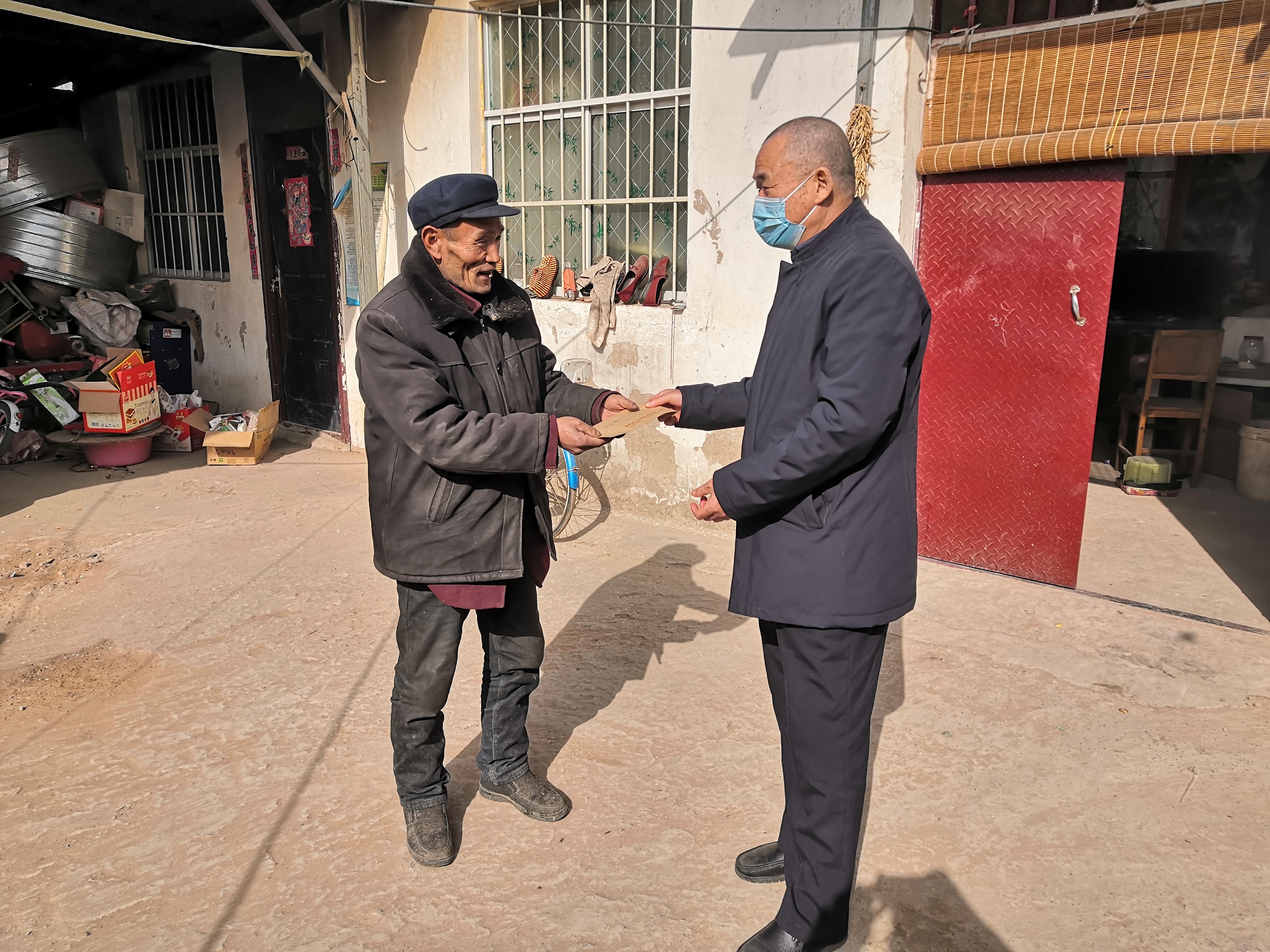 在豆腐刘村,周顺杰一行实地查看、深入了解了脱贫攻坚任务完成情况,并同刁家乡党委书记姬会杰、驻村第一书记李巍、村支书刘党归等人进行了座谈。随后,由周顺杰、项忠阳、石如善、王作伟、李保平、陈建民、张媛等县处级领导带队的7个慰问小组分别为39户困难户发放慰问金共计11700元。