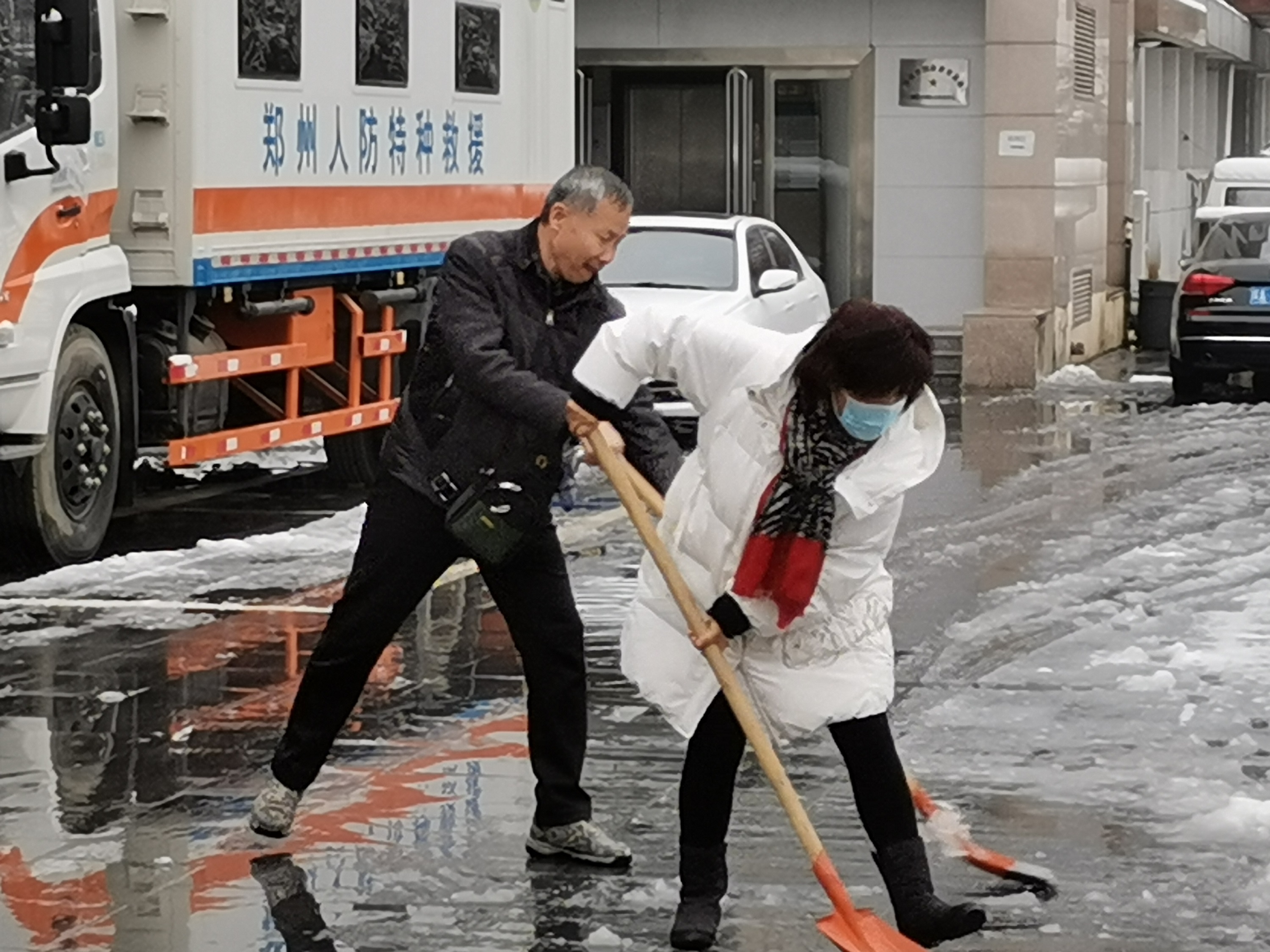 2月24日夜晚,气温骤降,郑州地区迎来了一场大雪,鹅毛般的雪花纷纷扬扬,厚厚的白雪覆盖了办公楼前的广场,给员工出行带来不便。为保障我办员工安全出行,我办组织开展了一场清除积雪大扫除活动。
