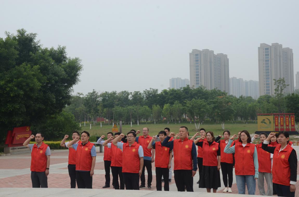 “我志愿加入中国共产党,拥护党的纲领,遵守党的章程,……”5月19日,在荥阳市党建主题公园初心广场,荥阳市人防办全体党员再次举起右拳,面对鲜红的党旗,庄严宣誓。