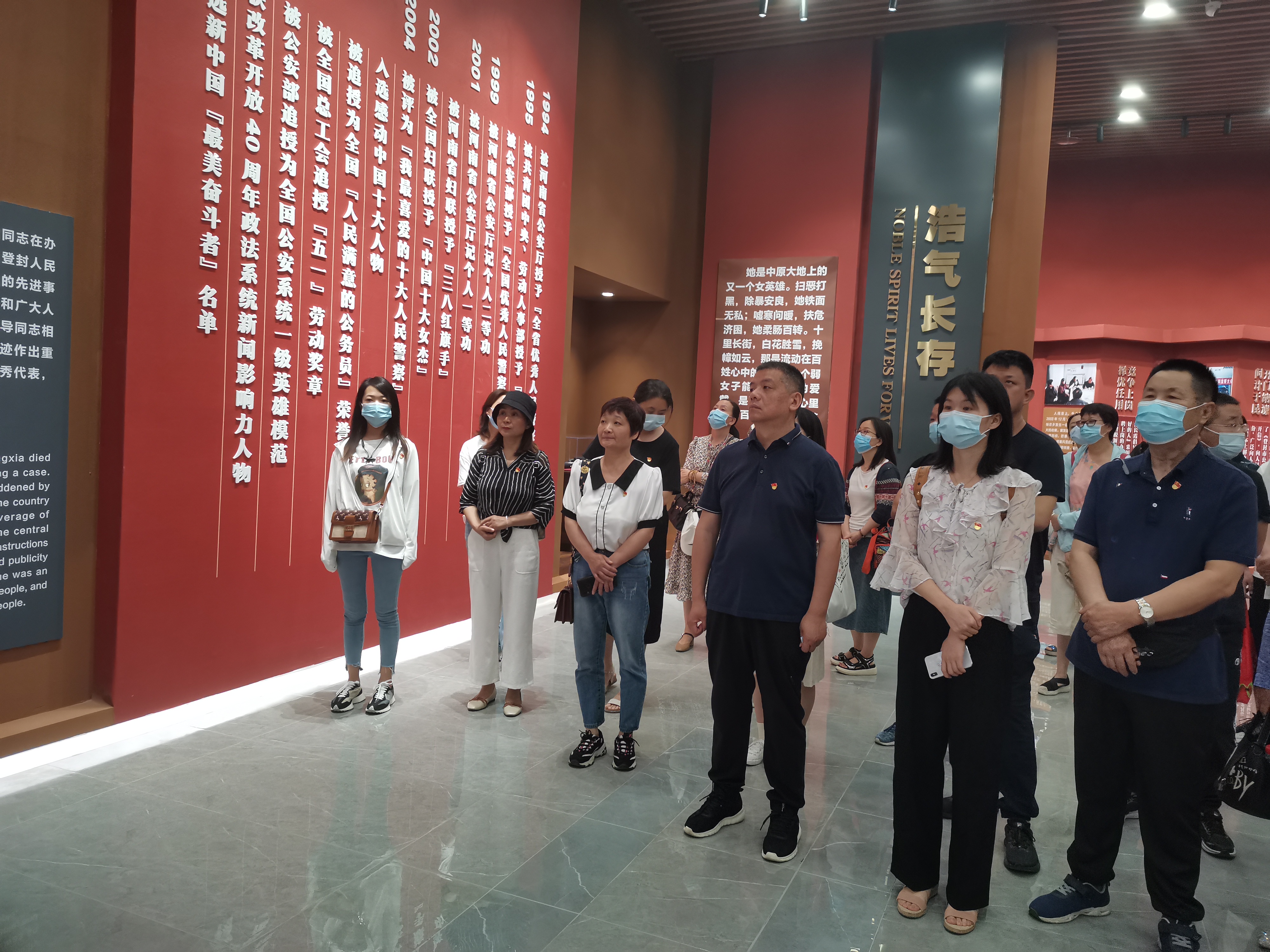 来到位于登封市的任长霞同志先进事迹陈列展,在讲解员的指引下,同志们重温了任长霞同志可歌可泣的感人故事,一幕幕照片震撼着大家,一段段文字触动着大家。通过“金色年华”“热血铸魂”“浩气长存”“时代召唤”四个主题展览及观看专题片《永恒的彩霞》,大家全面了解了任长霞短暂而光辉的一生。同志们纷纷表示,在建党一百周年来临之际,学习任长霞精神,正是要学习她对党忠诚的信念、无私为民的情怀、敢于担当的精神和英勇无畏的气概,更好地践行担当和使命。