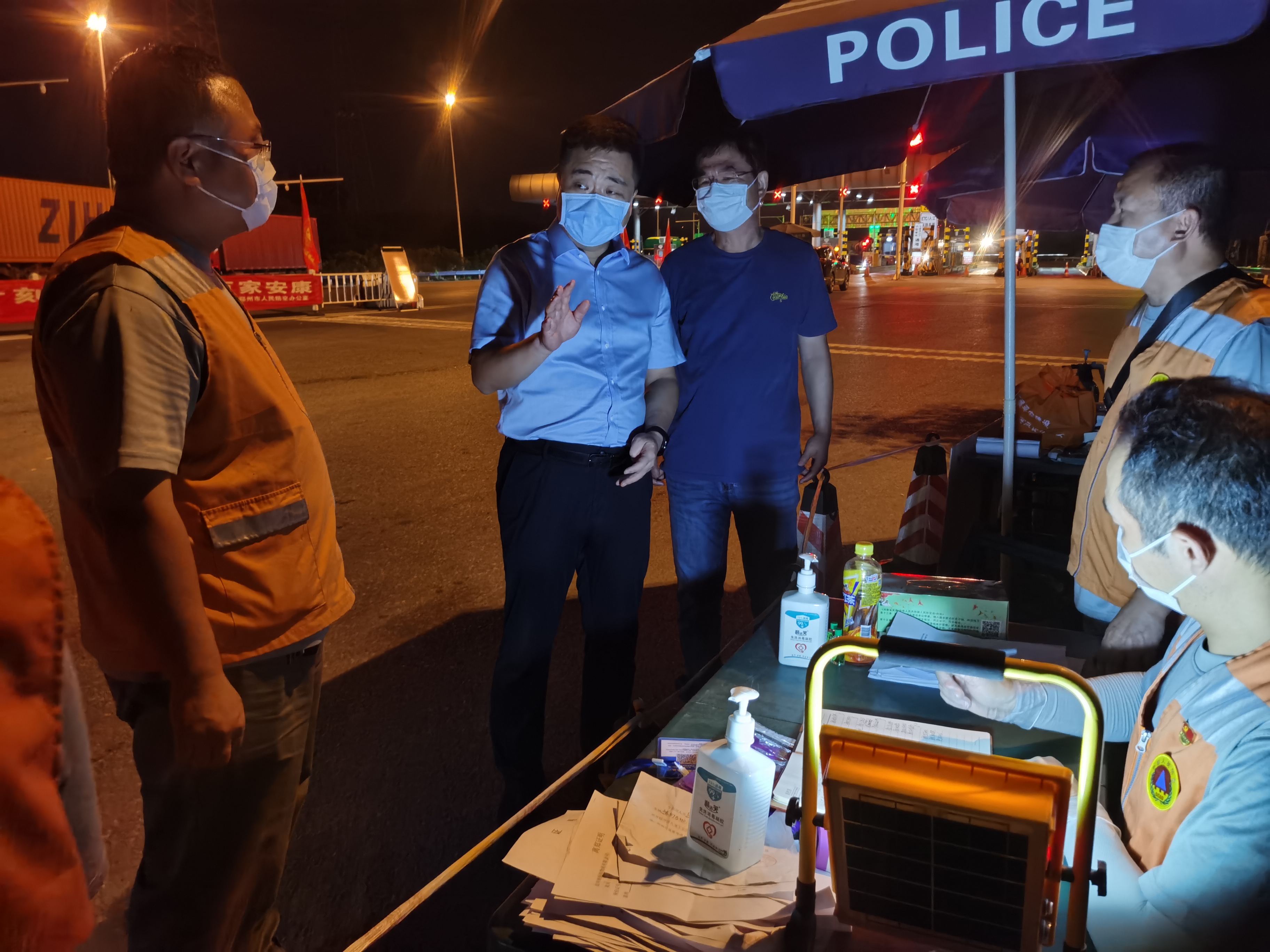 8月20日晚10时许,刚刚参加完市委常委扩大会议的市人防办党组书记史启新,顾不上吃饭就立即赶往京港澳高速航海路站卡口慰问坚守防控一线的执勤同志们。他对全办下沉人员斗酷暑、战风雨,日夜奋战在卡口疫情防控一线,用实际行动保障人民群众生命健康安全的做法表示了充分肯定。他表示,办党组始终同大家在一起,勠力同心,共战疫情。他强调,卡口是疫情防控的重要环节,执勤人员在注意自身防护的同时,要切实担负起职责,严格规范做好过往人员检查登记,坚决做到不漏一车、不漏一人,确保防控工作严之又严、细之又细。同时希望大家要发扬团结协作、迎难而上的精神,共克时艰、抗击疫情,全力打好疫情防控这场硬仗。卡口设置以来,史启新同志多次亲赴现场慰问指导,带头执勤带班,提出明确要求,给大家鼓劲打气。执勤人员纷纷表示,有办党组的关心支持和办领导的率先垂范,我们必将同心协力、攻坚克难,坚决打赢疫情防控阻击战。