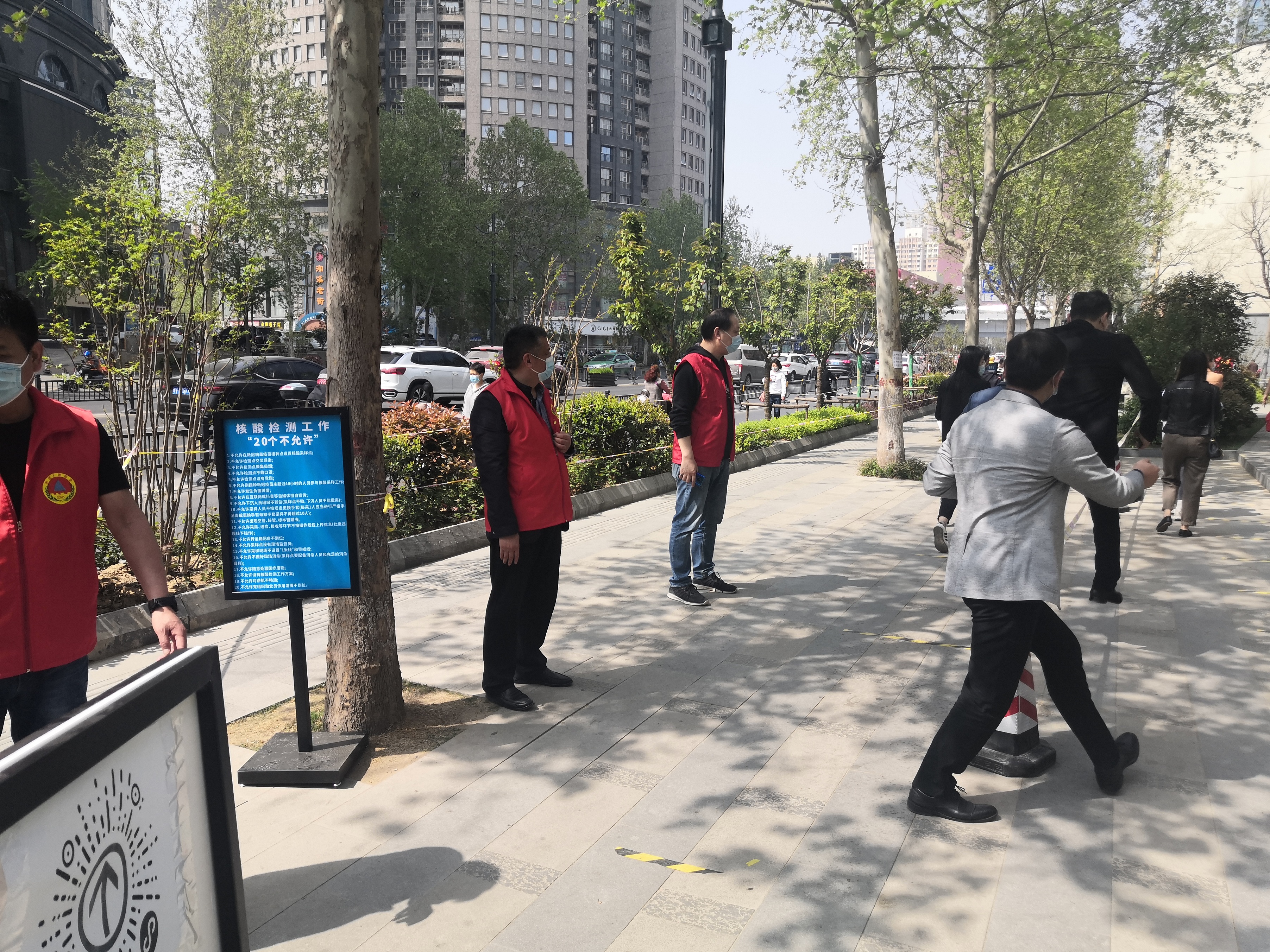 4月6日下午接到全员核酸检测通知后,管城区人防办第一时间与分包办事处、社区建立联系,提前做好组织动员、人员配备等工作,助力打赢疫情防控硬仗,全力协助分包办事处完成全员核酸检测。