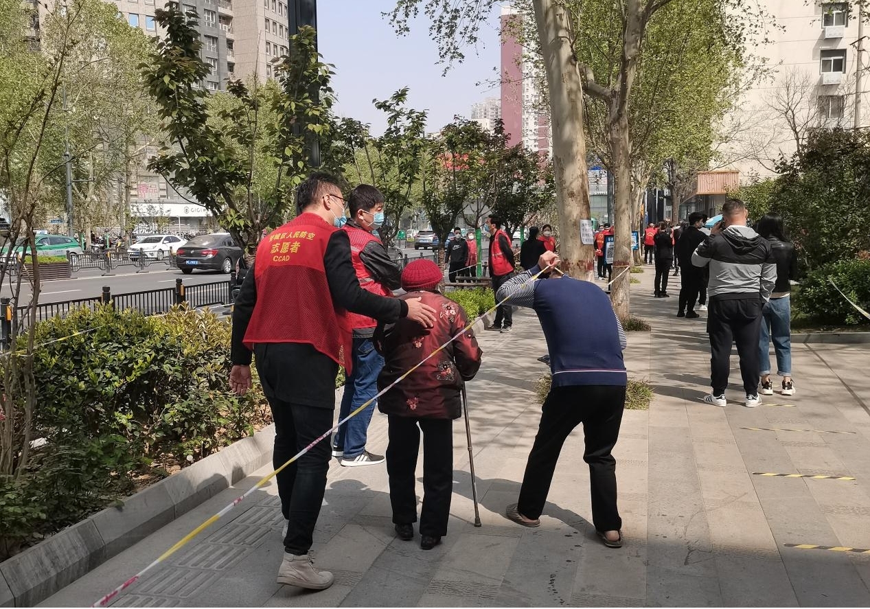 4月7日上午8:00核酸检测有序进行,由办党组率领党员干部及单位职工组成志愿服务队下沉到东大街办事处塔湾社区积极参与核酸检测一线。办全体志愿者合理分工,明确岗位职责,安排专人维护现场秩序、提醒群众佩戴口罩,帮助群众生成检测码、引导群众有序保持安全距离,引导老幼群体走特殊通道进行核酸检测,和社区同志一起筑起疫情防控的坚强防线,保障了分包社区核酸检测采样任务高效顺利完成。