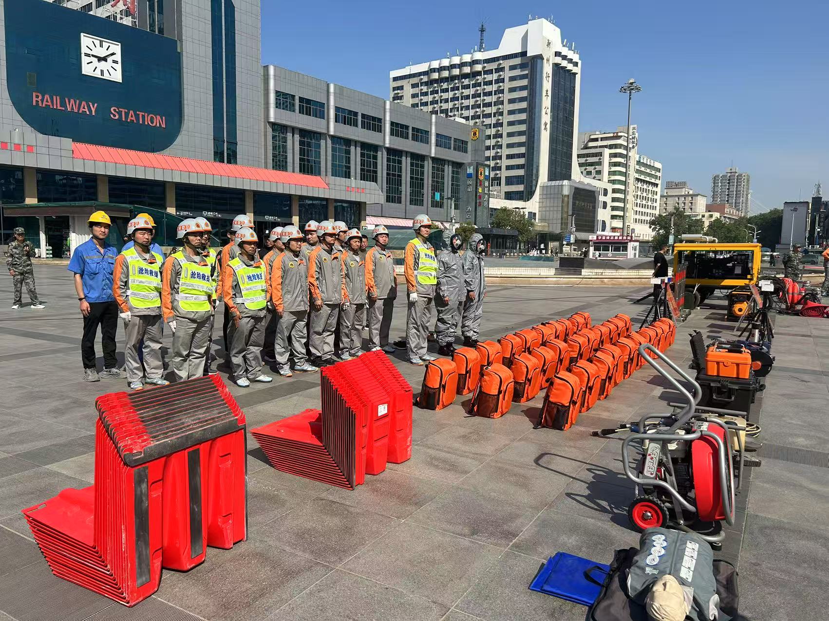 本次演练创新设置“1+2”三个现场。机动指挥平台位于郑州火车站东广场,作为整个演练的指挥中枢,实时把控全局、精准下达指令,火车站东广场同时模拟雨水倒灌处置现场。尖岗水库和“028工程”则分别模拟人防工程内积水救援、滑坡塌方等真实且极具挑战性的险情处置现场。