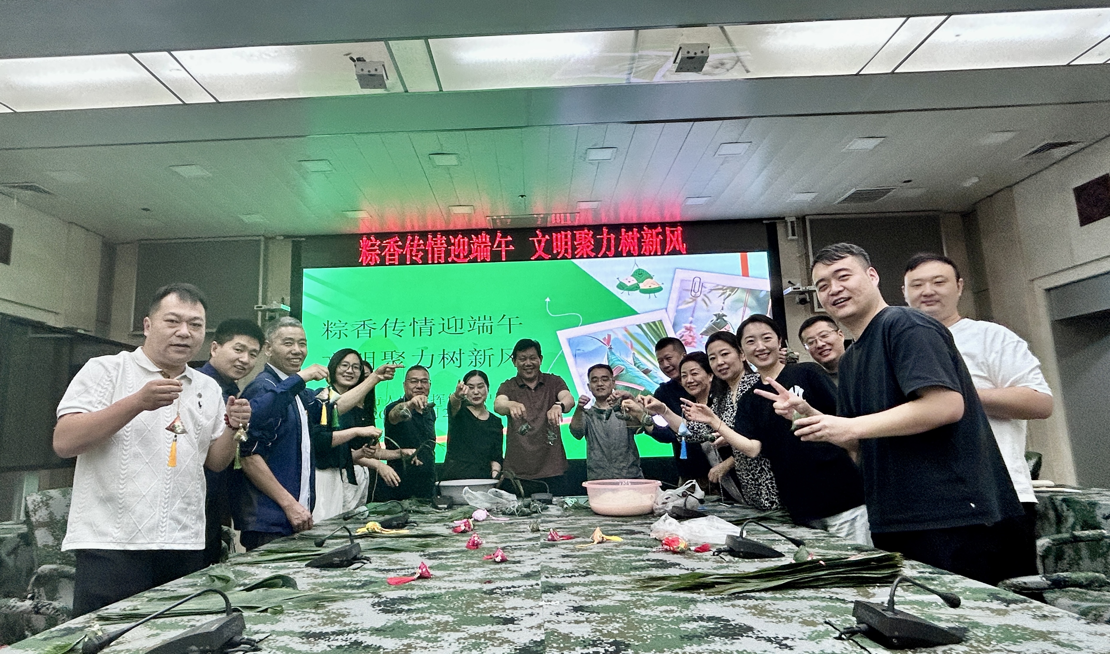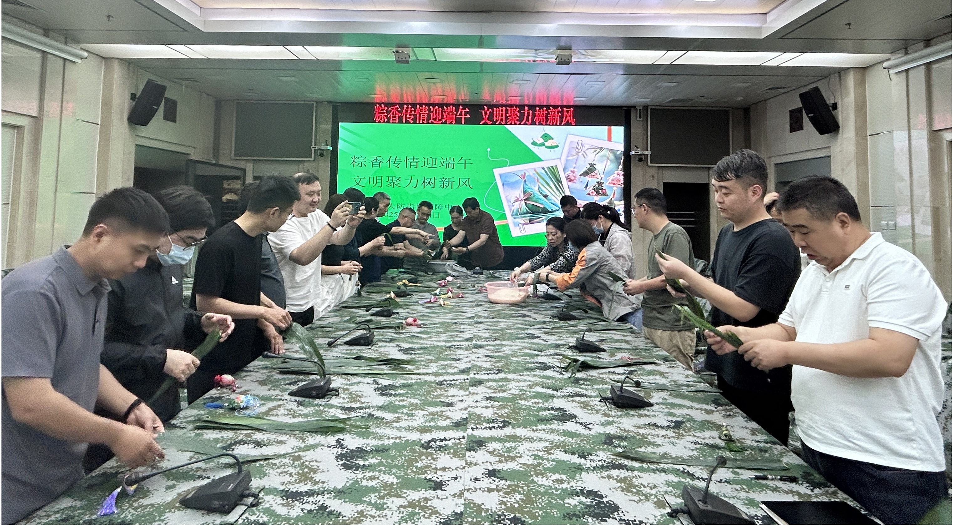 活动现场准备了糯米、粽叶、红枣等丰富食材,干部职工们纷纷展露身手。粽叶一卷,放枣、填米、压实、封口、捆扎……大家围在一起,齐上手,同参与,绿粽叶、白糯米、大红枣,在大家灵巧的手中化作一个个形态各异的粽子,一片绿叶、一缕清香、一种传承。只只各式各样、千姿百态的粽子瞬间成型,大家忙得不亦乐乎。各式各样的粽子在手中诞生,大家共同体验劳动的乐趣,气氛其乐融融。