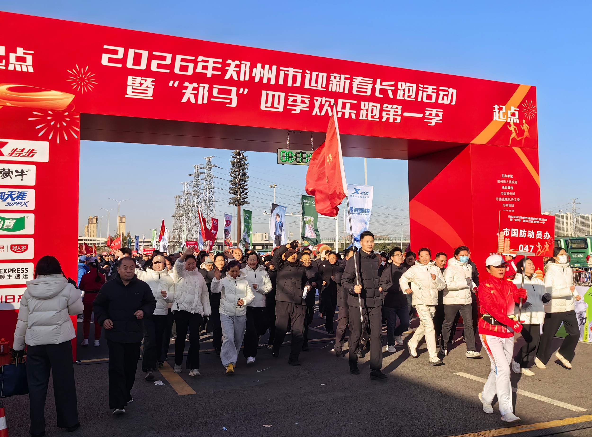 为深入贯彻落实全民健身国家战略,扎实推进我市全民健身事业高质量发展,进一步激发全市干部群众参与国家中心城市建设的热情,以奋发进取、昂扬向上的精神面貌迎接新年的到来,2026年1月11日上午9时许,郑州市迎新春长跑暨“郑马”四季欢乐跑活动第一季在郑州奥林匹克体育中心北门鸣枪开跑。本次活动由郑州市人民政府主办,市委宣传部、市委直属机关工委、市体育局等9部门联合承办,设3公里全民健身组(6500人)和10公里竞赛组(4000人),是郑州连续举办39年的传统城市品牌活动,已成为全市辞旧迎新、凝聚奋进力量的重要载体。活动原定于1月1日举办,后因天气原因延期至1月11日鸣枪,步履虽迟,奔跑仍如约而至。我办高度重视、精心组织,69名干部职工踊跃报名参与,展现出良好精神风貌。