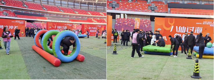 本次活动还在奥体中心体育场设置全民健身嘉年华专区,涵盖全民健身项目展演、趣味运动会、生肖主题互动区、体育产业文创市集等内容。大家积极参加了“智勇大冲关”“八仙过海”等团队合作体验项目,荣获优秀组织奖等多个奖项,用欢声笑语开启新春美好序章。